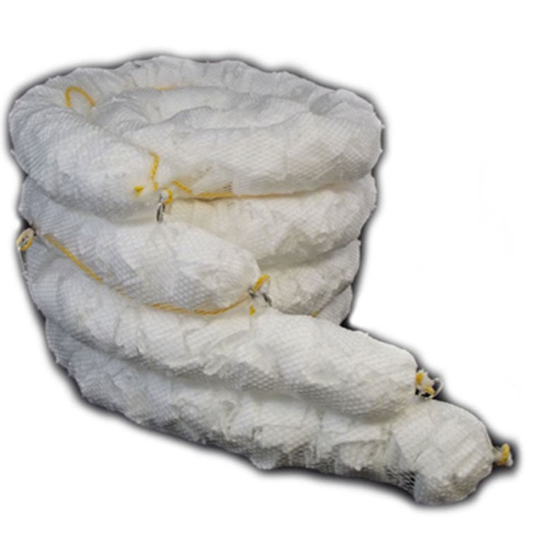 ProSorbents™ Spaghetti Boom allows thick oils to efficiently flow through the material by allowing the thick oil to penetrate deeply into the boom. The tough outer mesh net protects and keeps the material in place as the spaghetti strip absorbent filler contains, viscous oil based liquids deeply into the boom.
